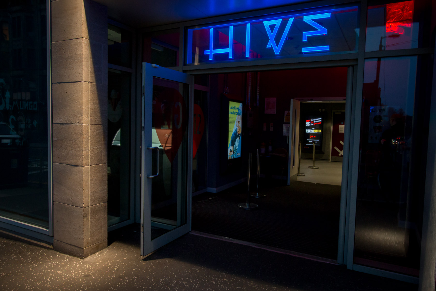 Venues: The Hive and The Well, two vibrant nightclubs housed within Glasgow University's sprawling campus, known for their energetic atmosphere and frequented by the student community.
