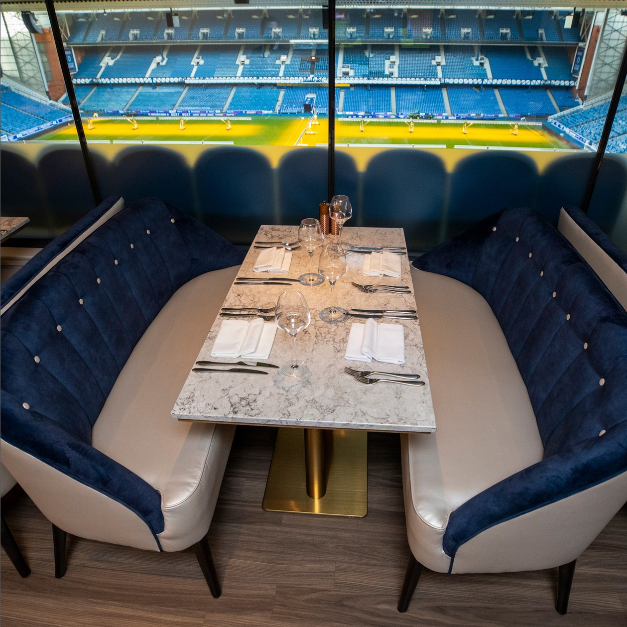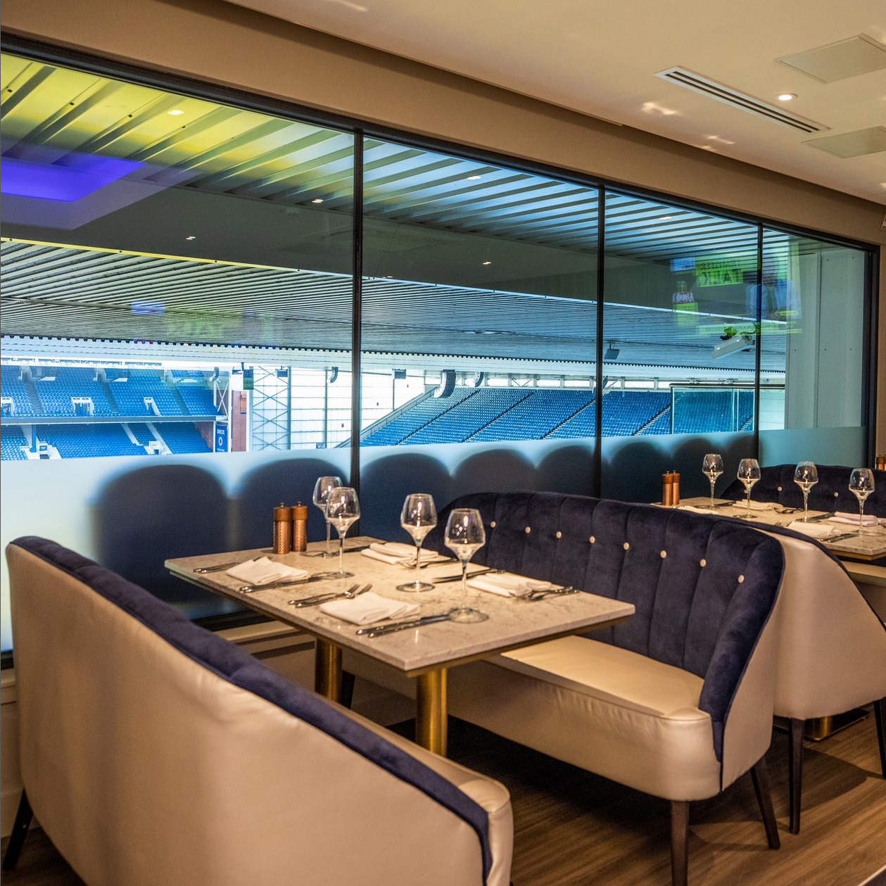 Objective: To artfully combine history, luxury, and functionality, resulting in a distinguished lighting experience within the Blue Sky Lounge Restaurant at Rangers Football Club's legendary Ibrox Stadium.